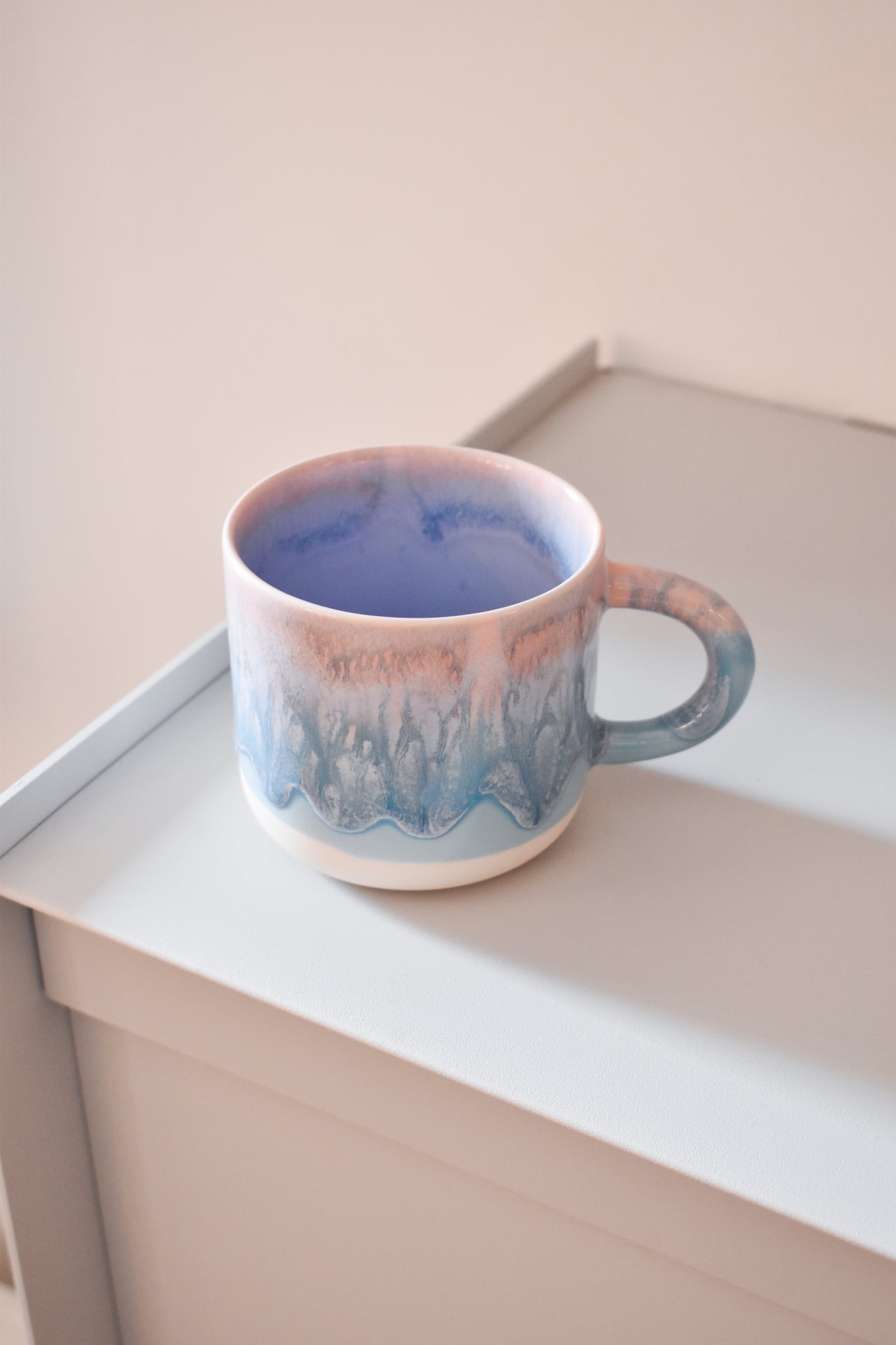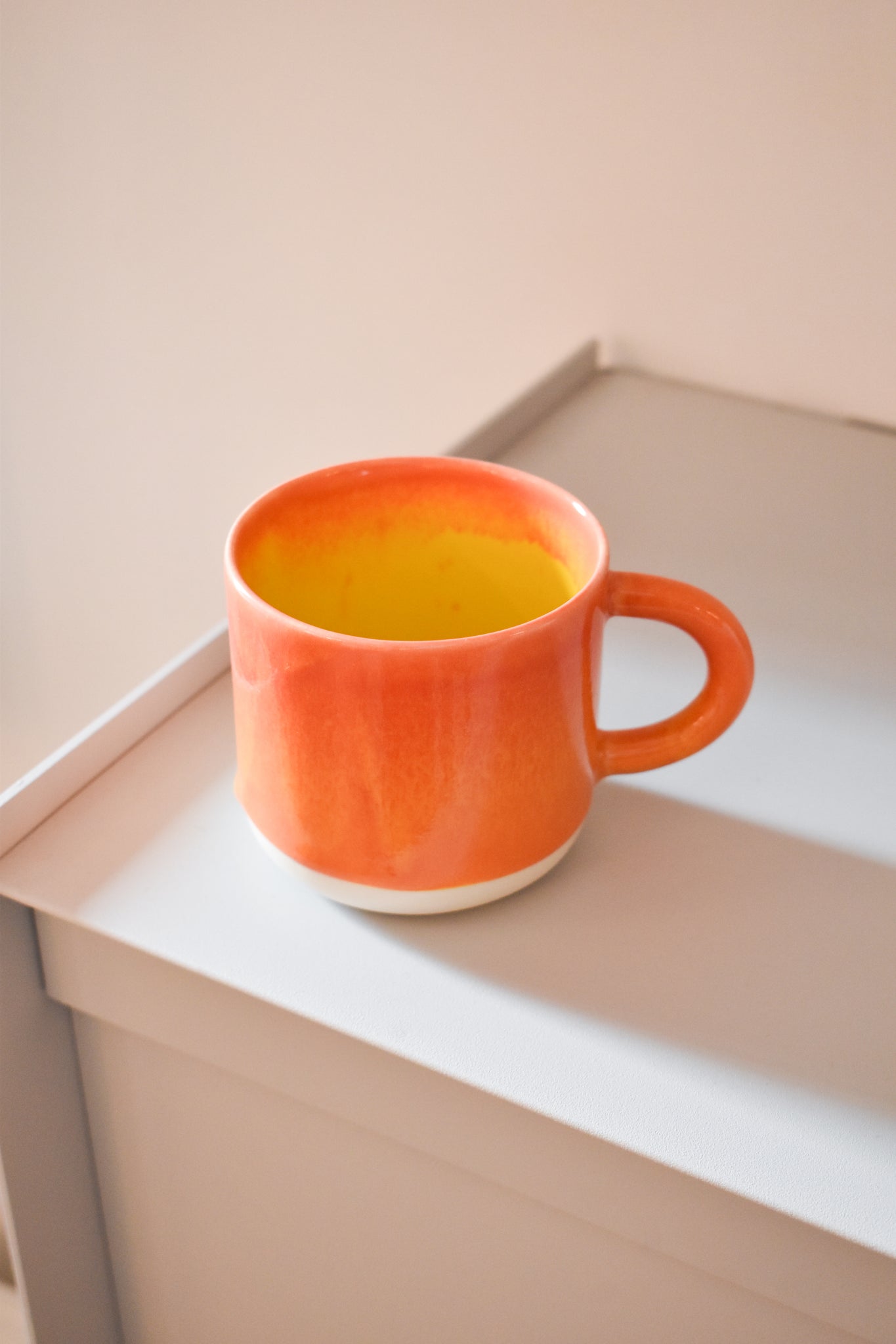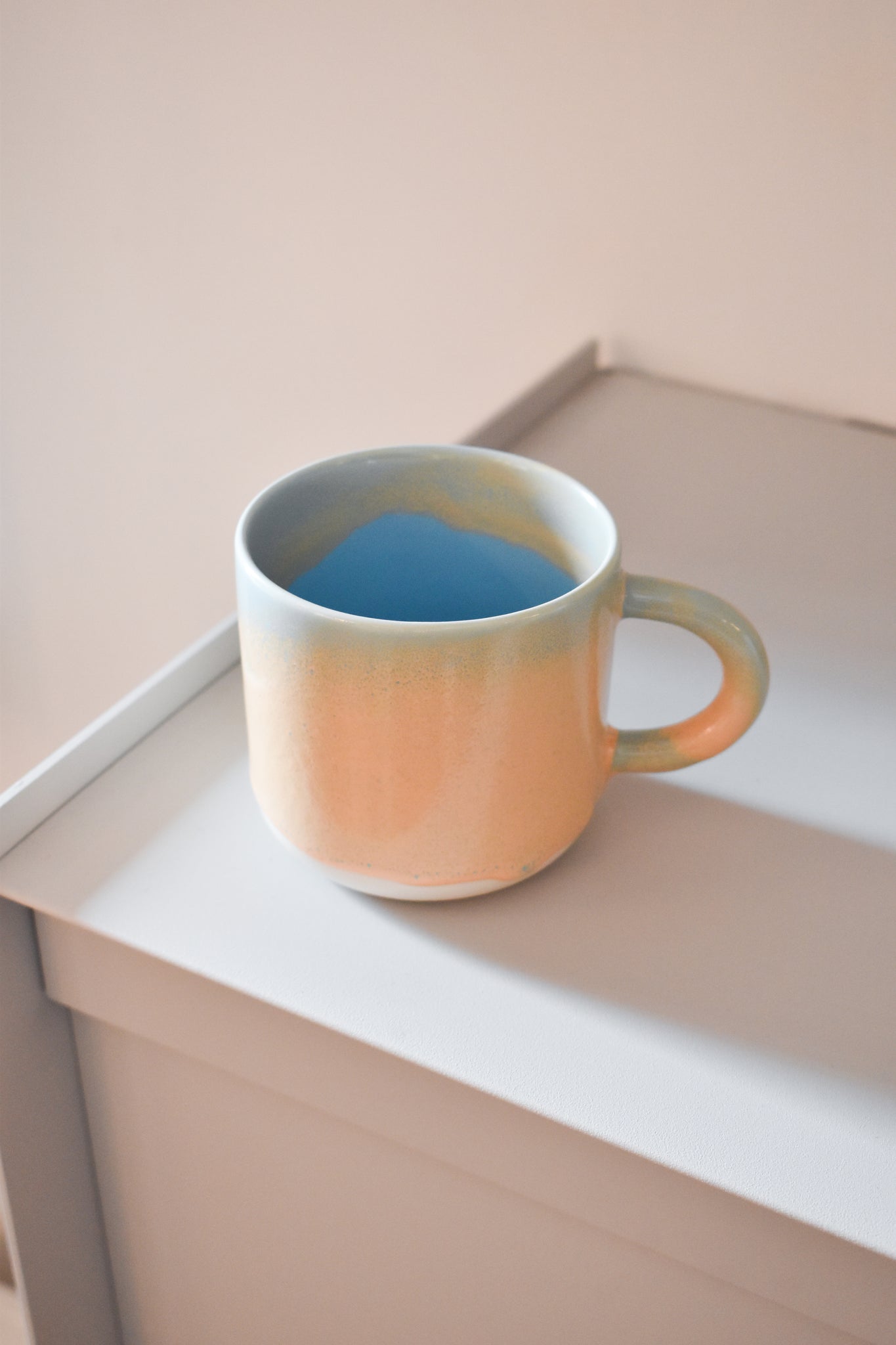 The Chug Mug, introduced in April 2017, is part of the Studio Arhoj tableware series. The mug features a large handle and holds a healthy serving of coffee or tea.